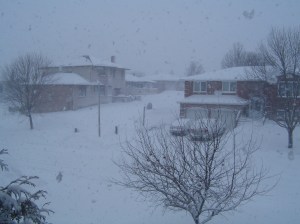 Winds roared from the south, racing up our street. In the dark distance of the corner where our street meets another, a car struggled fruitlessly to negotiate the unplowed turn until a neighbour popped out of his door to help the driver. The bus service website informed me that school buses were cancelled. The weather site’s alert switched from a “Snow Squall Watch” to “Snow Squall Warning” while I watched. Snow began to cling to the window.